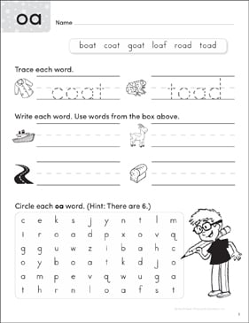 Vowel Digraphs Oa Write N Seek Practice Page Printable Word